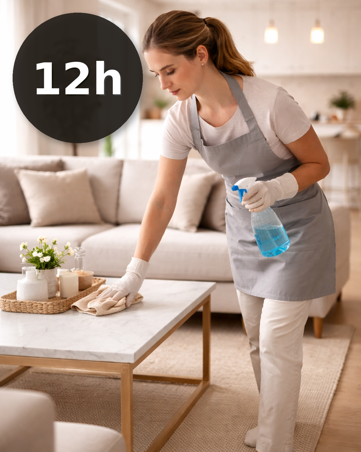 12 horas de limpieza a domicilio para un repaso rápido (baño + cocina, polvo y suelos) o para probar el servicio.